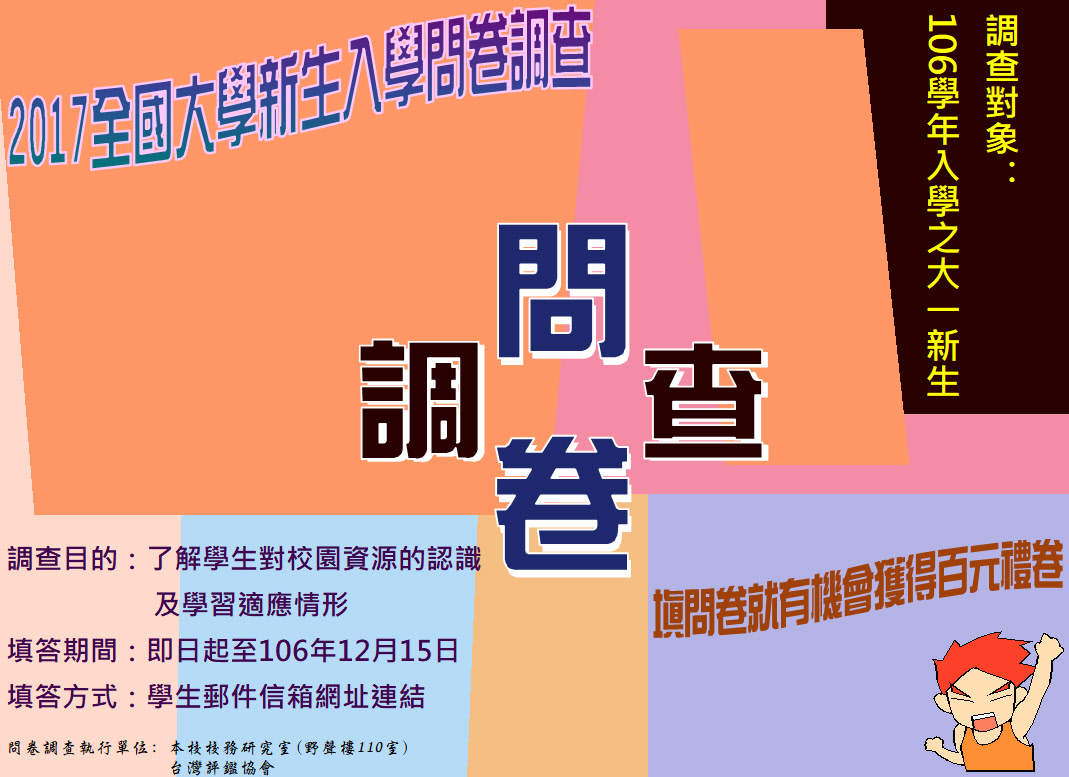 本校參與台評會進行之全國大學新生入學調查中文(英文)問卷,