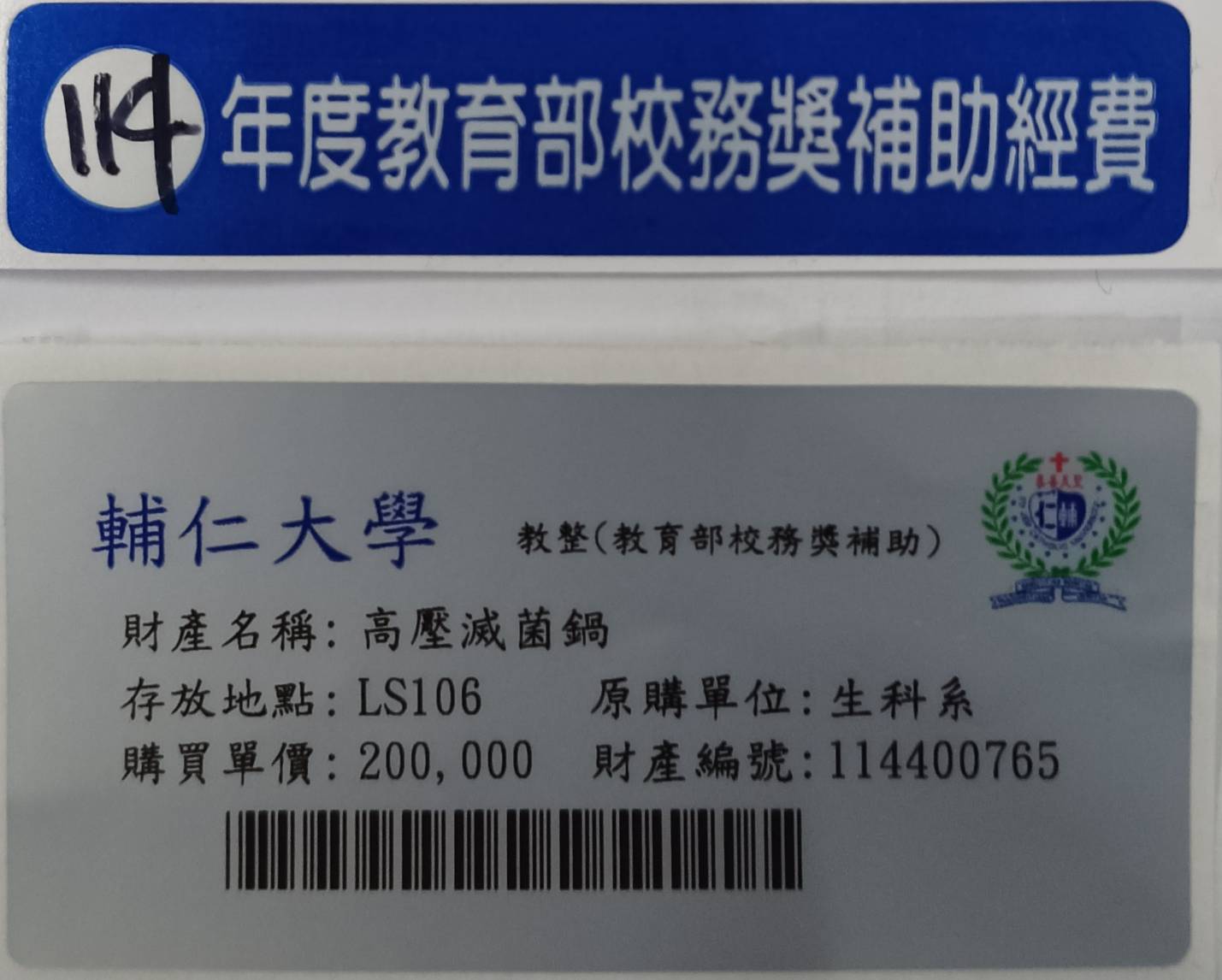 | 輔仁大學生命科學系財產圖文資料 |