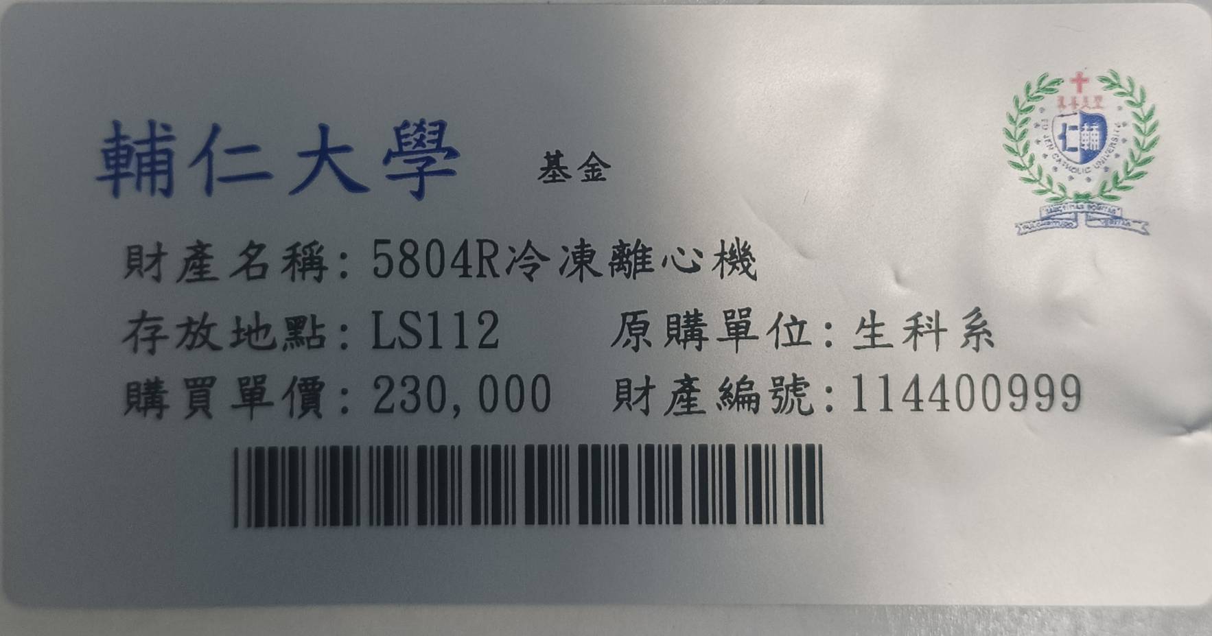 | 輔仁大學生命科學系財產圖文資料 |
