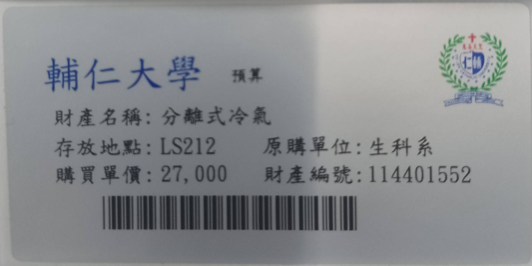 | 輔仁大學生命科學系財產圖文資料 |